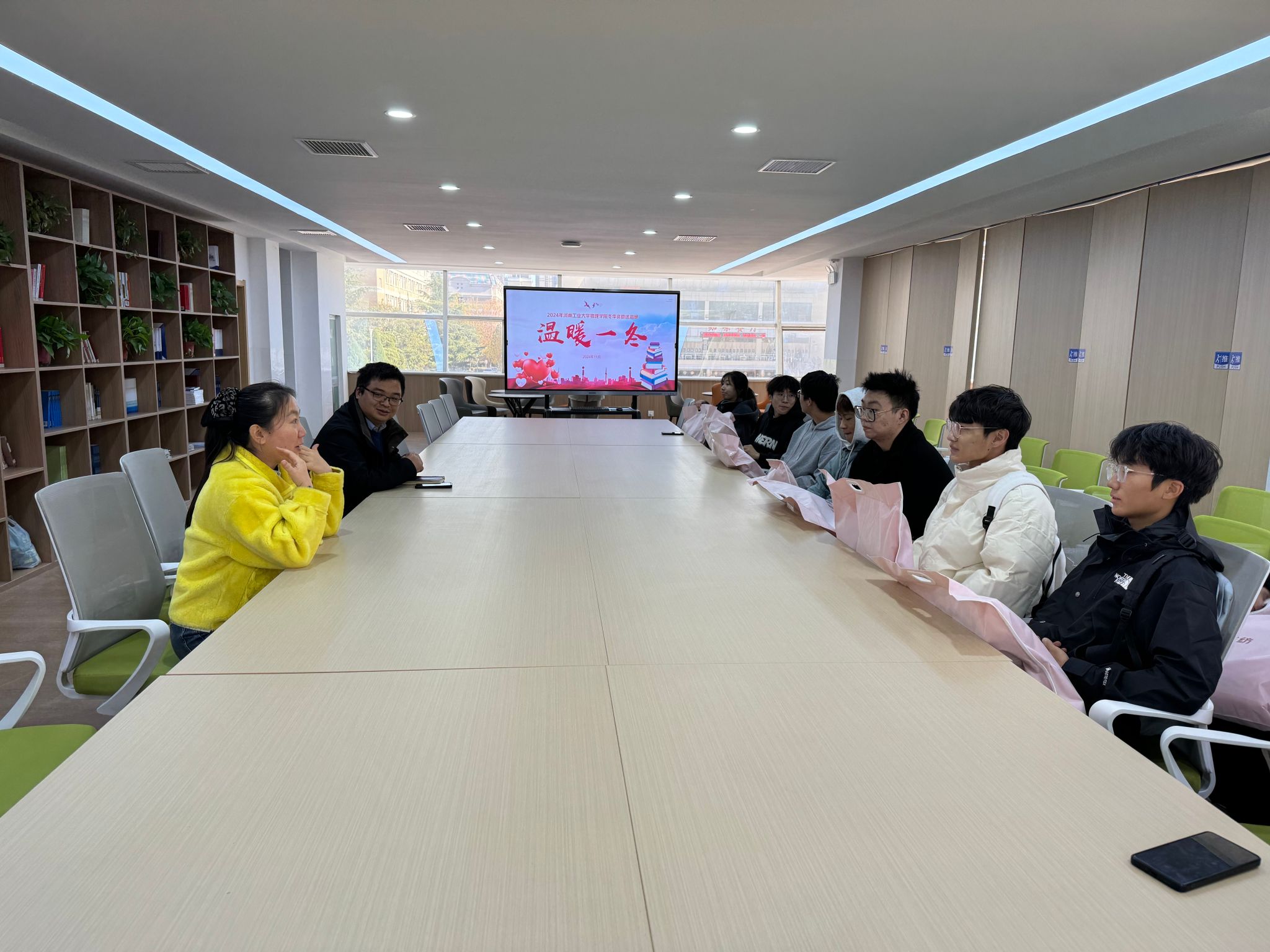 本次活动分为“温暖一冬”活动和师生座谈两个环节。在“温暖一冬”活动环节,学院向家庭经济困难的受助学生发放学院为同学们准备的暖心衣物,传递冬日的温暖与关怀。在师生座谈环节,老师首先表达了对同学们的关爱和慰问,并与同学们就在学校的生活和学习情况进行了深入的交流。受助学生备受鼓舞和感动,他们表达了对国家和学校对贫困学生资助的感激之情,并立志努力学习,回报学校和社会。