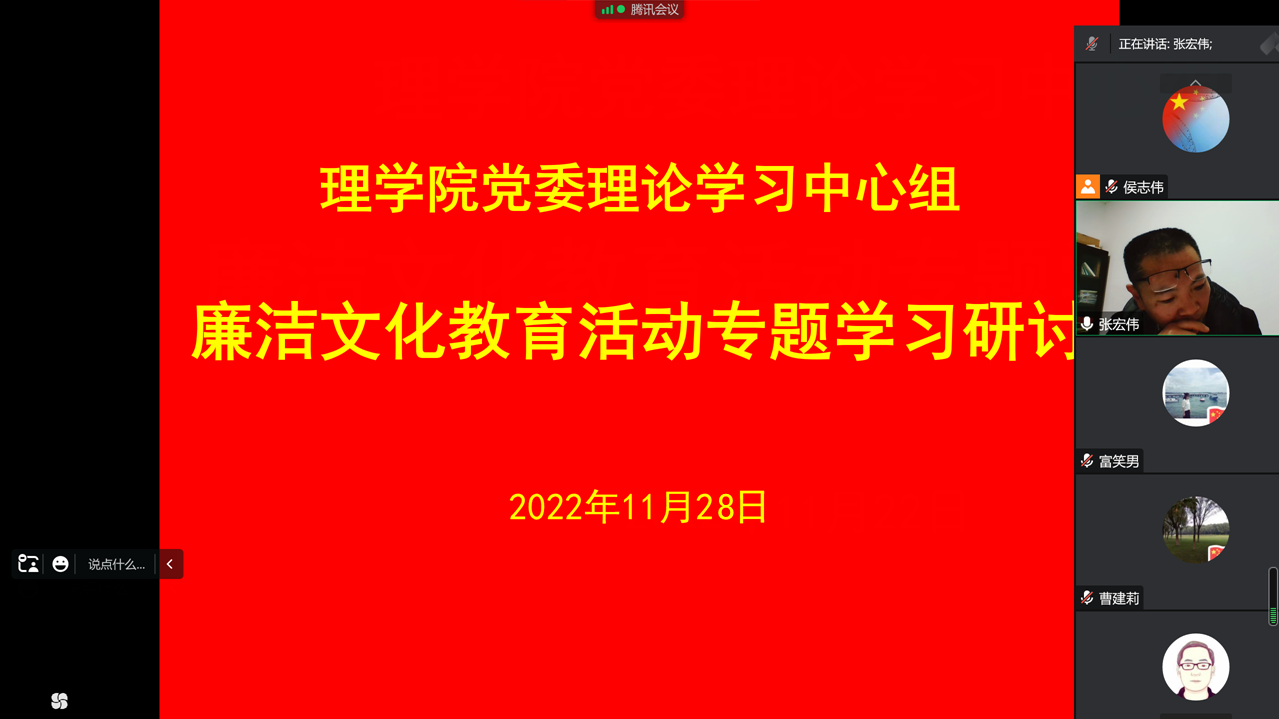 党委通过视频会议的方式,召开理论学习中心组专题学习会议。深入学习党的二十大报告中关于深化全面从严治党新的战略部署及新时代廉洁文化建设等有关内容。中心组全体成员参加,会议由院党委书记张宏伟主持。