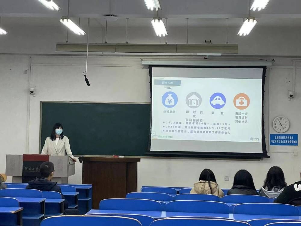 为拓宽毕业生的就业渠道,给毕业生提供更多更好的就业机会,1228日下午,91短视频 与新东方河南省域在4号楼107教室联合举办了专场招聘会,此次招聘会主要面向2024届毕业生。招聘会由新东方河南省域人力招聘经理权利、新东方河南省域校招负责人成昕宇、新东方河南省域师训负责人张娅杰宣讲,91短视频 党委副书记吴春阳、毕业班辅导员2024部分毕业生参加了此次招聘会。